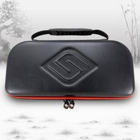 Our premium Slim Case features premium, high durability vegan leather material, upgraded zippers, and our plush interior lining. Secure interior storage for accessories and plenty of games.